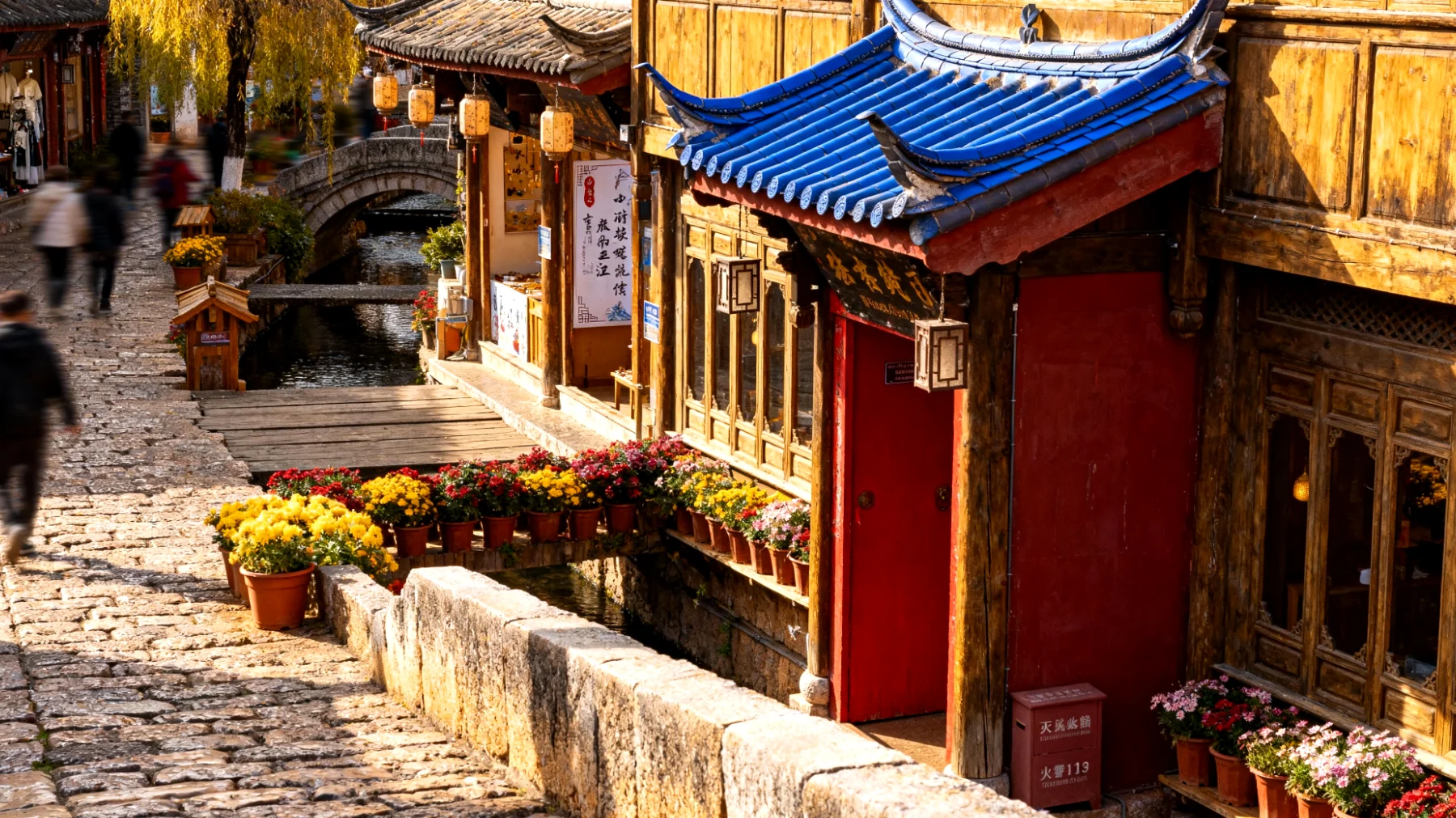 Das Herzstück Liijangs ist zweifellos die Altstadt, ein Labyrinth aus engen Gassen, Kanälen und hölzernen Gebäuden, die teilweise über 800 Jahre alt sind. Anders als in vielen chinesischen Städten wurde hier keine schnurgerade Straßenführung umgesetzt – stattdessen folgen die Wege dem natürlichen Flusslauf und schaffen so eine organische Struktur, die zum Verlieren und Wiederfinden einlädt.